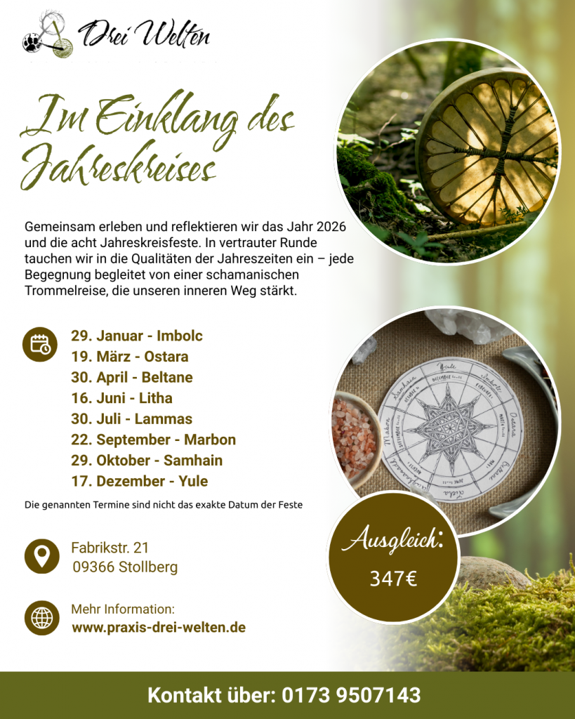 Tauche im Jahr 2026 gemeinsam mit anderen Frauen in die Qualitäten der acht Jahreskreisfeste ein. In einem achtsamen und geschützten Kreis widmen wir uns den jeweiligen Zeitqualitäten, teilen Erfahrungen und reflektieren unseren persönlichen Weg durch das Jahr.